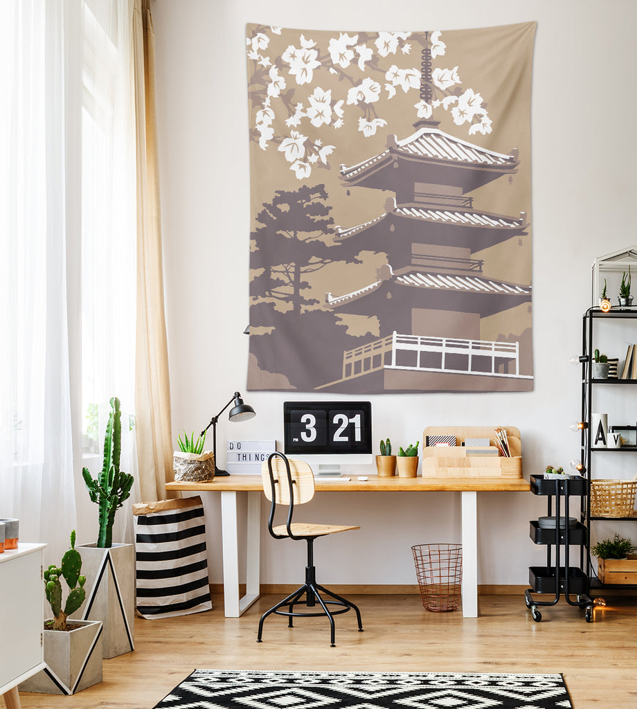3D Cherry Blossom Pavilion 5340 Steve Read Tapestry Hanging Cloth Hang Amy