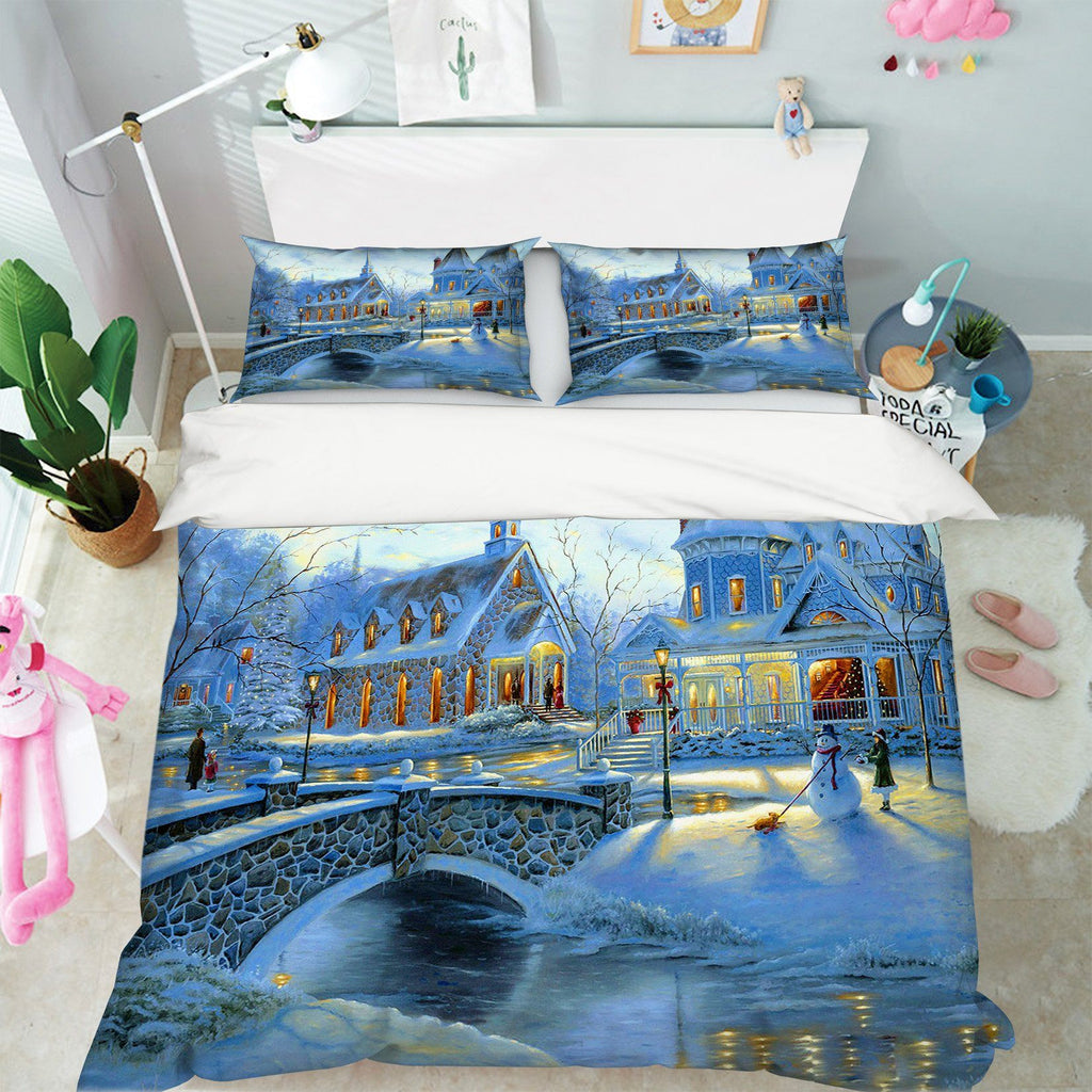 3D Christmas Villa Bridge 10 Bed Pillowcases Quilt