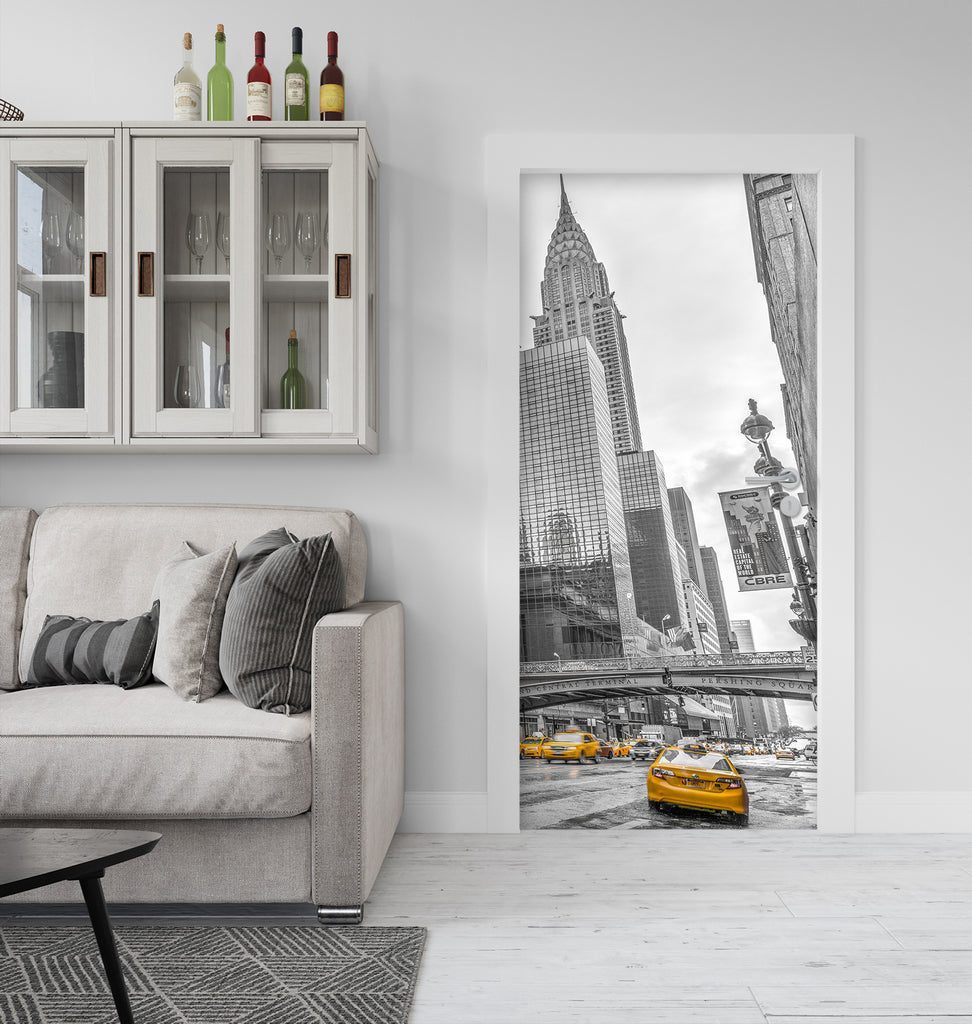 3D City Street Yellow Car Building 101177 Assaf Frank Door Mural Sinsin
