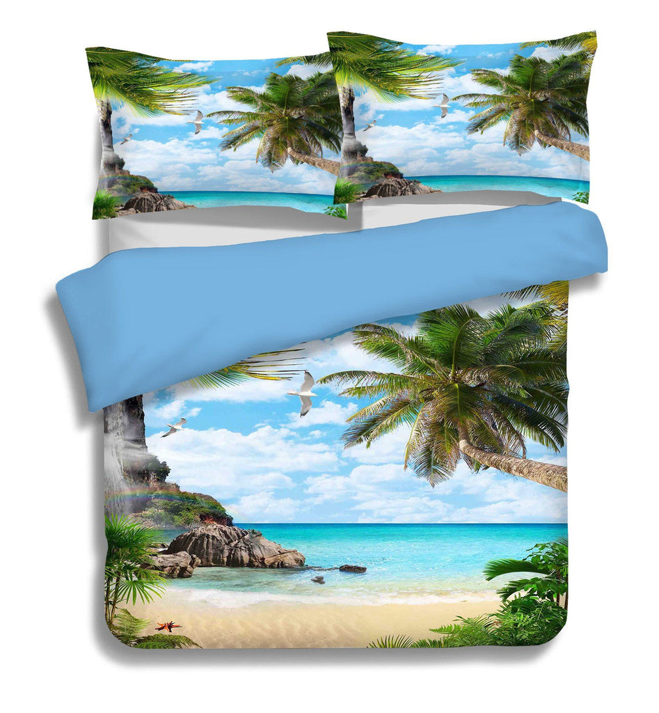 3D Coconut Tree Seagull 168 Bed Pillowcases Quilt