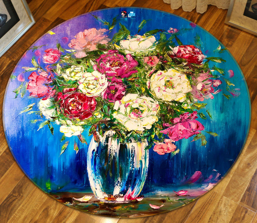 3D Colorful Flower Vase 872 Skromova Marina Rug Round Non Slip Rug Mat Amy