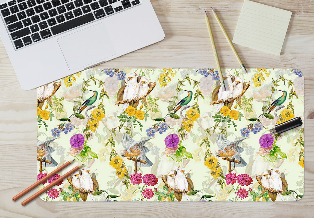 3D Colorful Flower White Parrot 120145 Uta Naumann Desk Mat Sinsin
