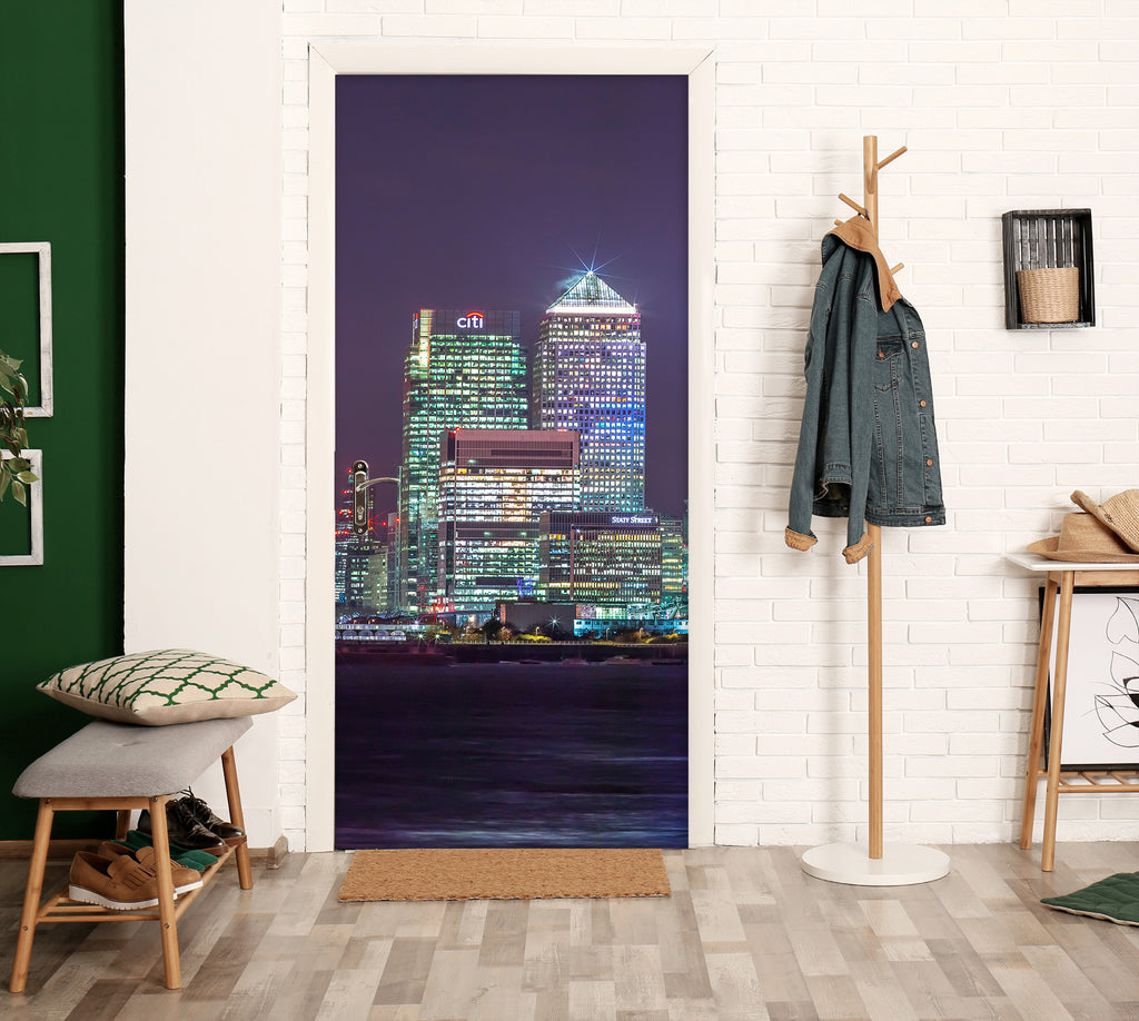 3D Colorful Lights Night Building 106151 Assaf Frank Door Mural Sinsin