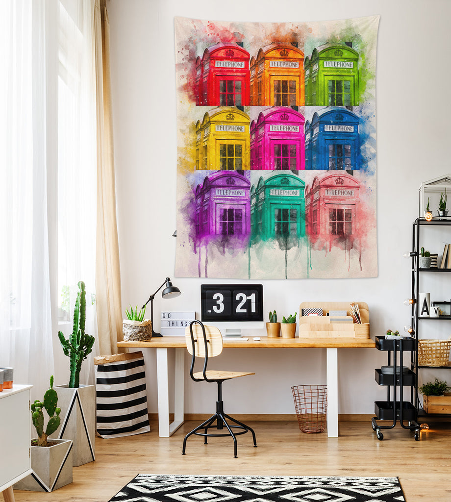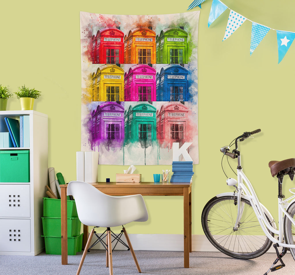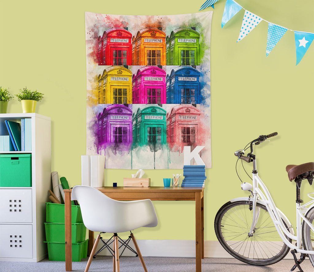 3D Colorful Phone Booth 116181 Assaf Frank Tapestry Hanging Cloth Hang Sinsin