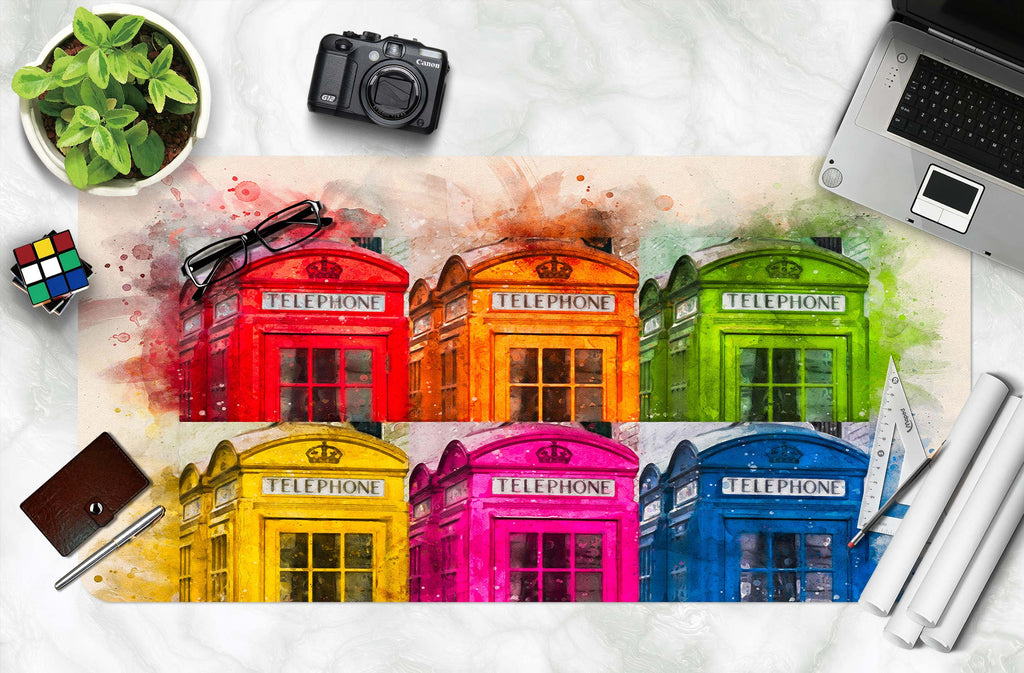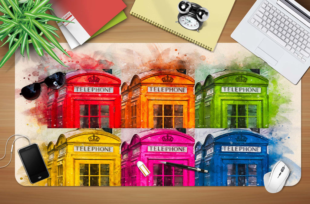 3D Colorful Phone Booth 12416 Assaf Frank Desk Mat Sinsin