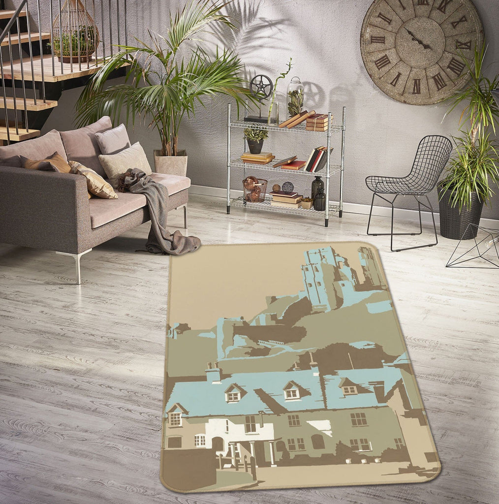 3D Corfe Castle 1112 Steve Read Rug Non Slip Rug Mat