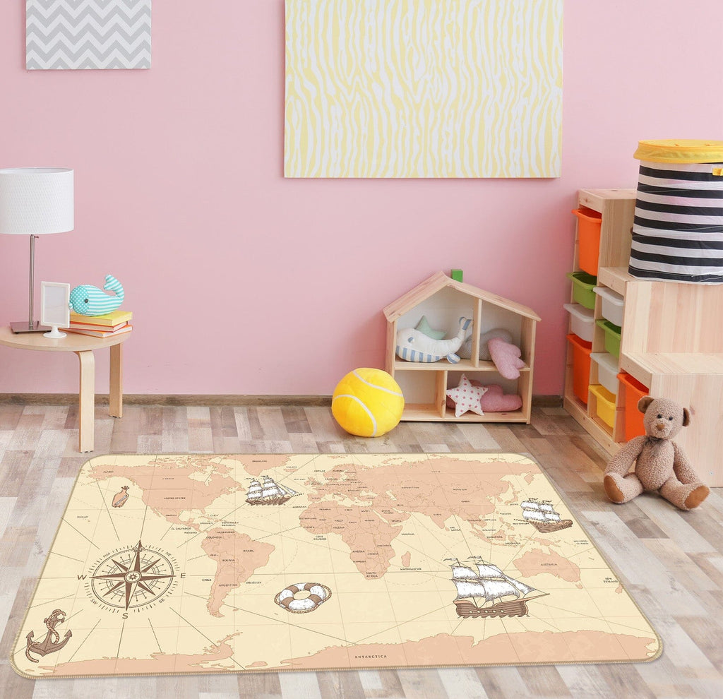 3D Cute Boat 2001 World Map Non Slip Rug Mat
