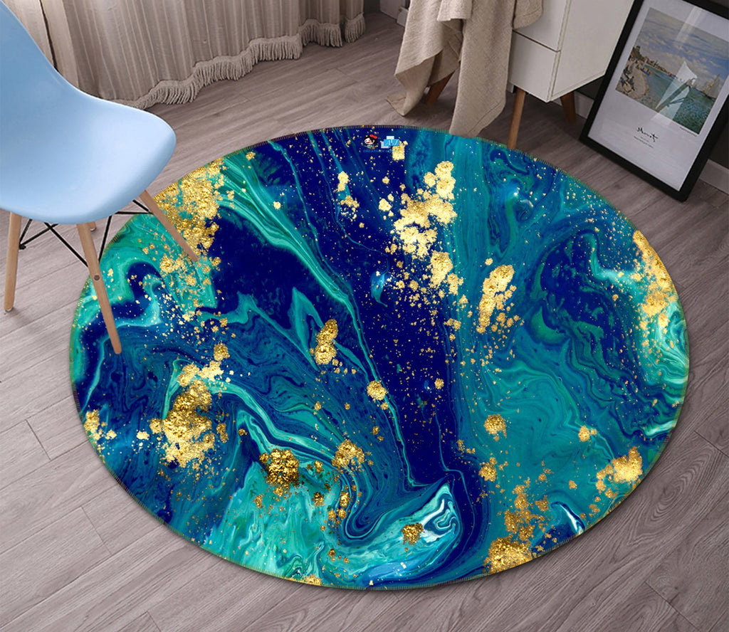 3D Dark Green Flow 107 Round Non Slip Rug Mat
