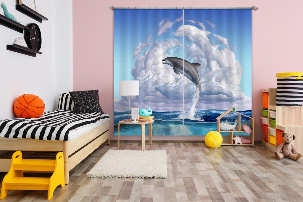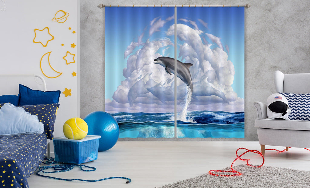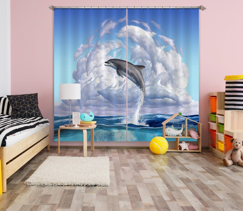 3D Dolphin Play 061 Jerry LoFaro Curtain Curtains Drapes Dai