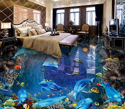 3D Dolphin Stone Cave 1970 Floor Wallpaper