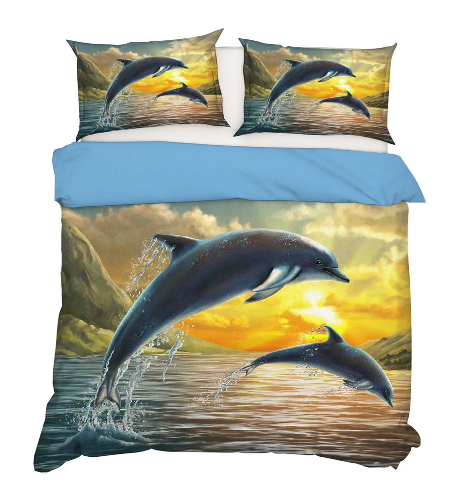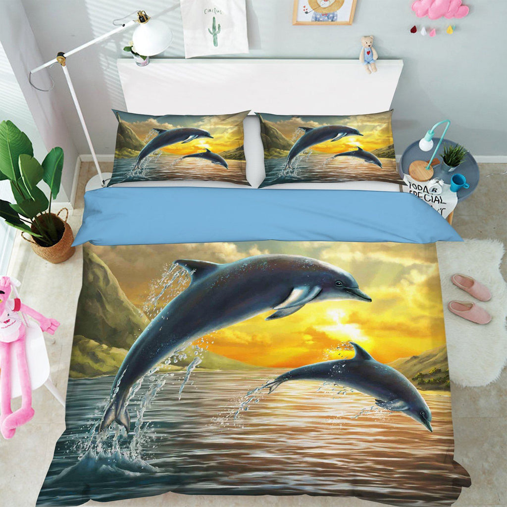 3D Dolphin Sunset 037 Bed Pillowcases Quilt