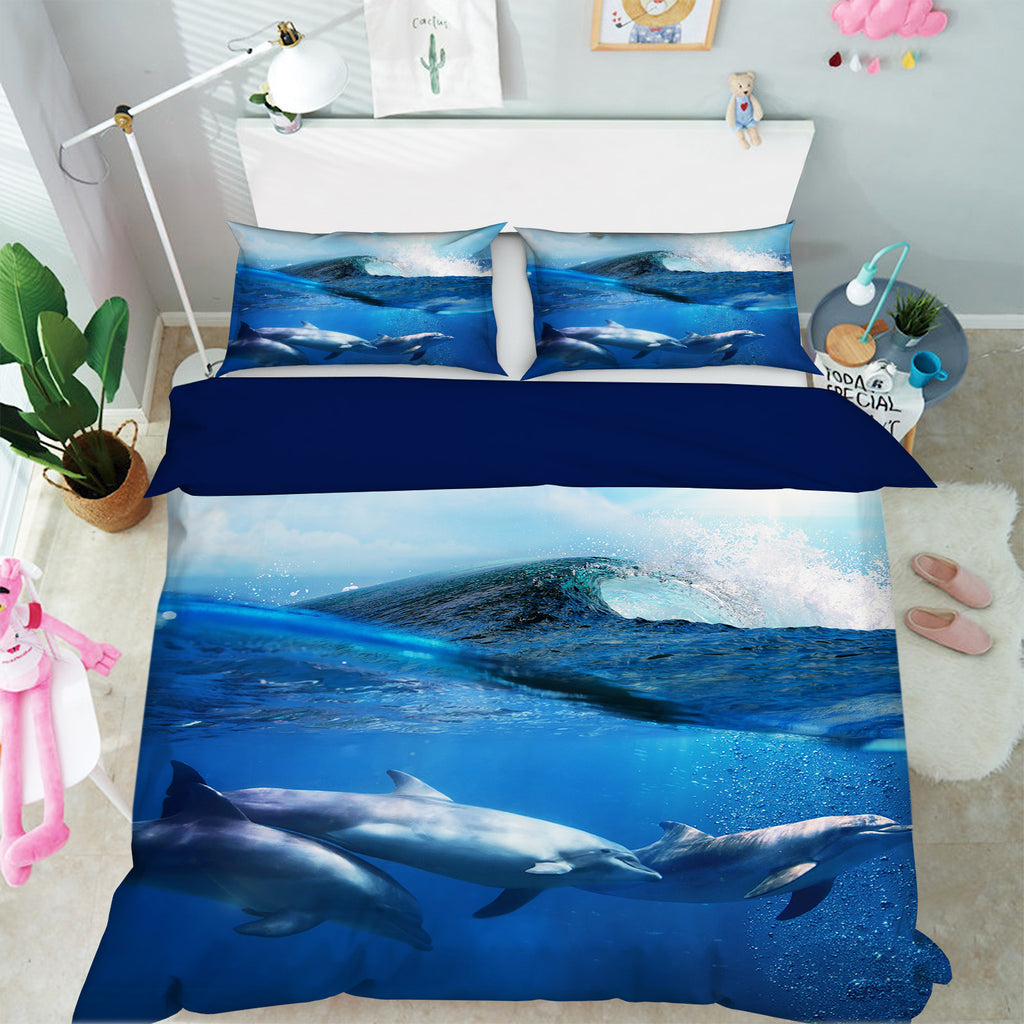 3D Dolphin Waves 040 Bed Pillowcases Quilt