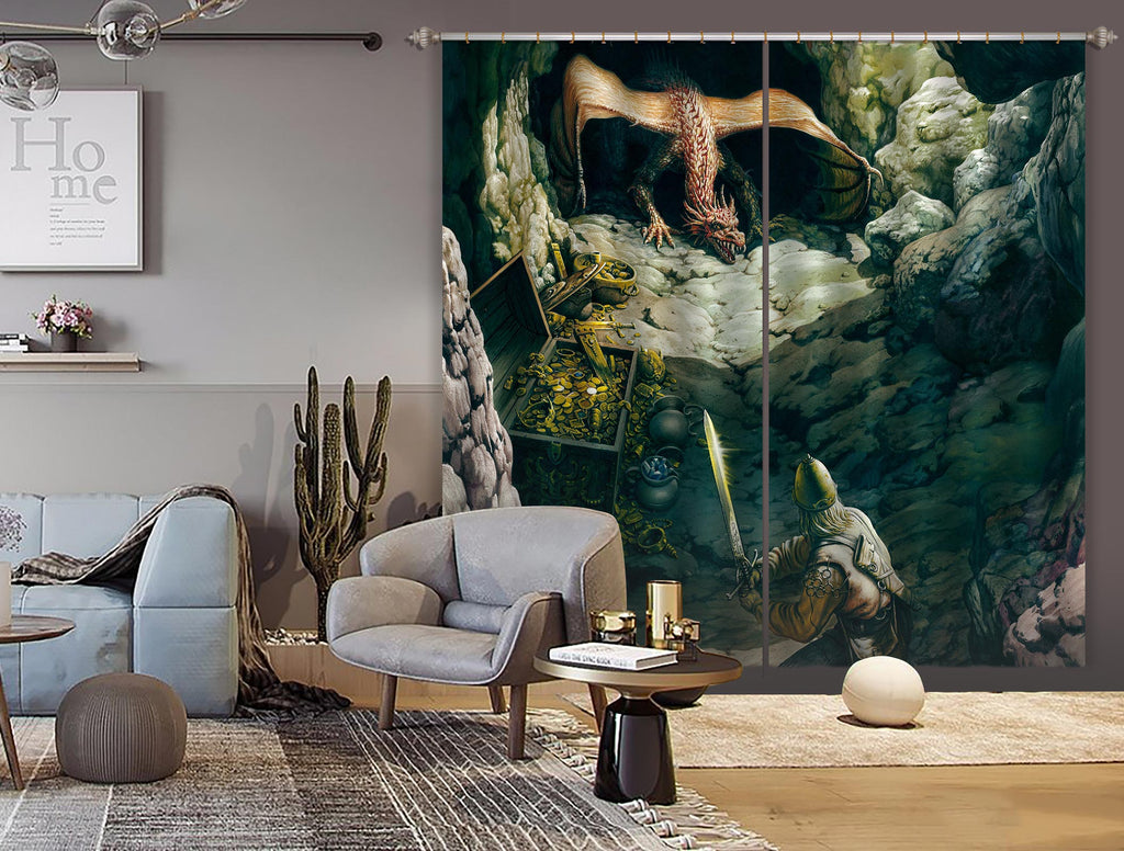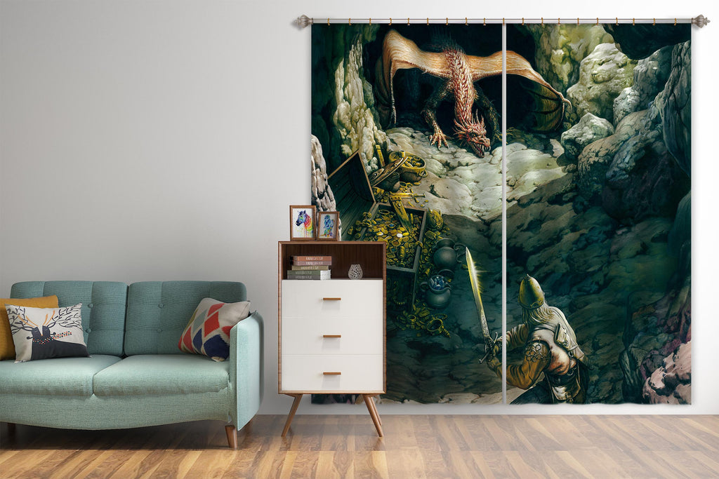 3D Dragon Cave Soldier 7165 Ciruelo Curtain Curtains Drapes
