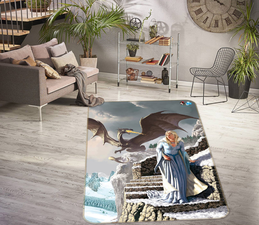 3D Dragon Stone Stairs People 6015 Ciruelo Rug Non Slip Rug Mat Sinsin