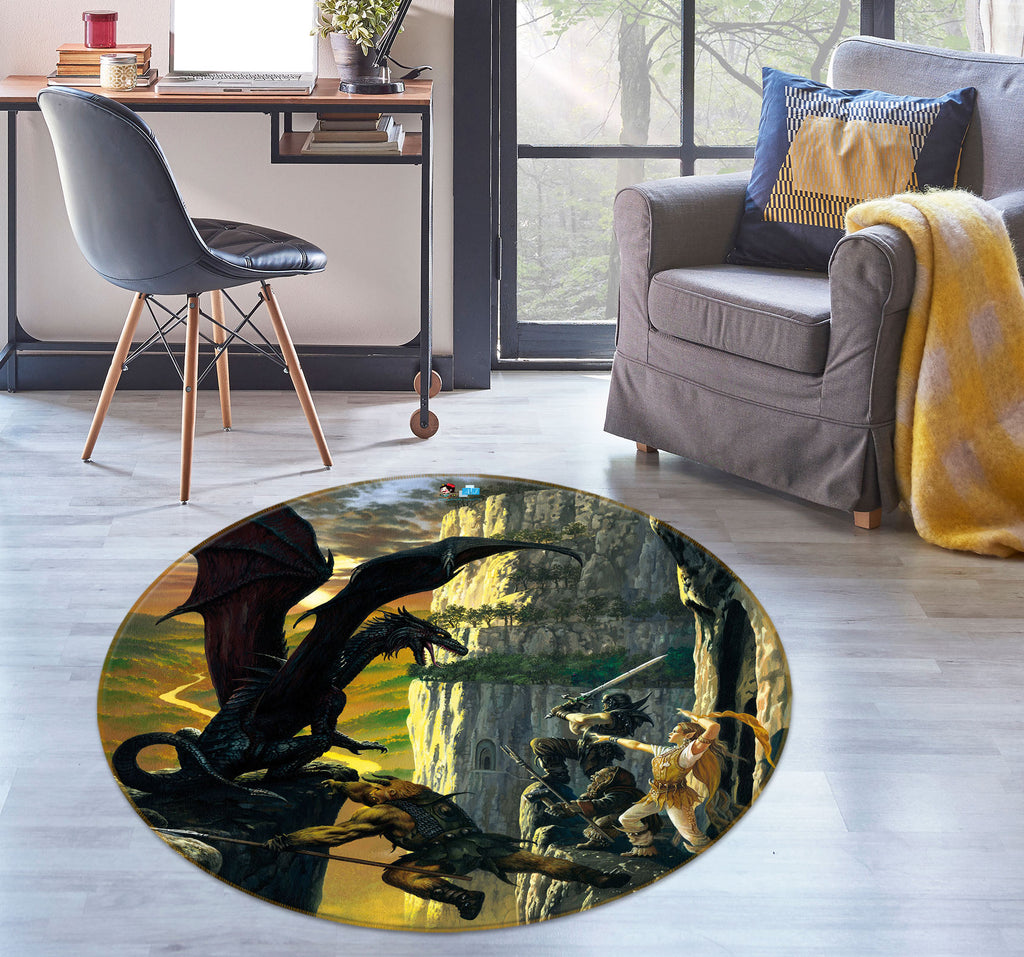 3D Dragon Warrior 6088 Ciruelo Rug Round Non Slip Rug Mat Sinsin