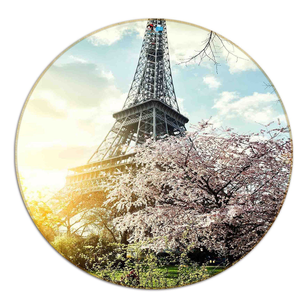 3D Eiffel Tower Flowers 111 Round Non Slip Rug Mat
