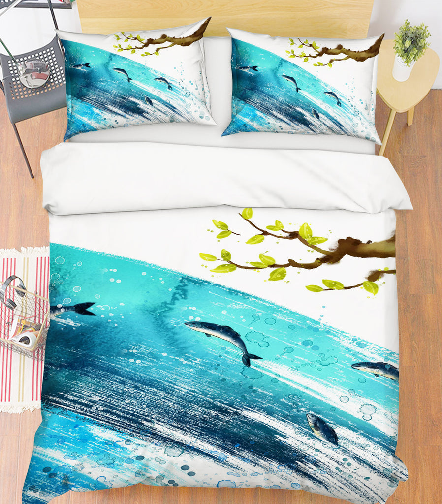 3D Fish Tree 008 Bed Pillowcases Quilt