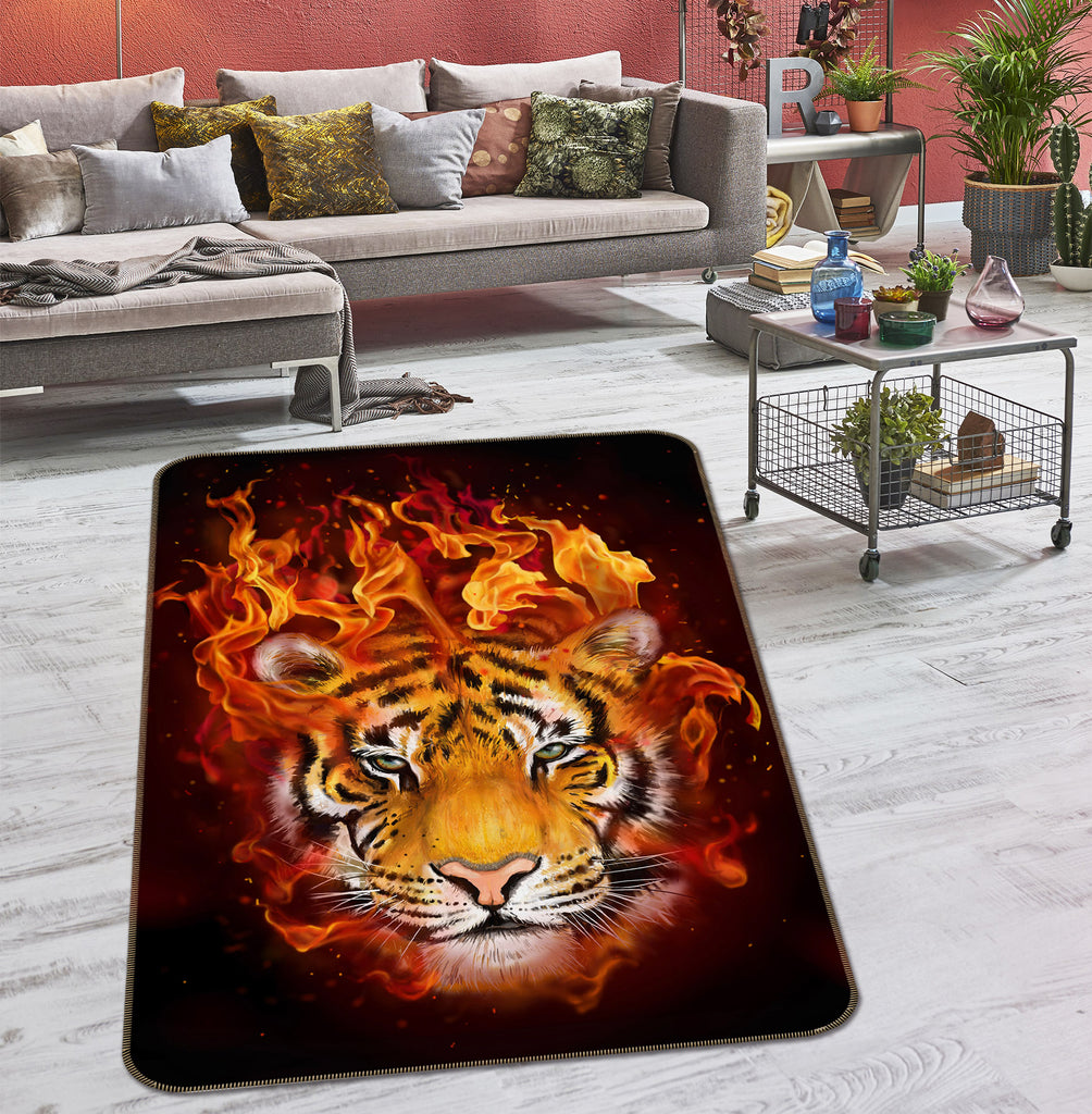 3D Flame Tiger 199 Animal Non Slip Rug Mat Zoe