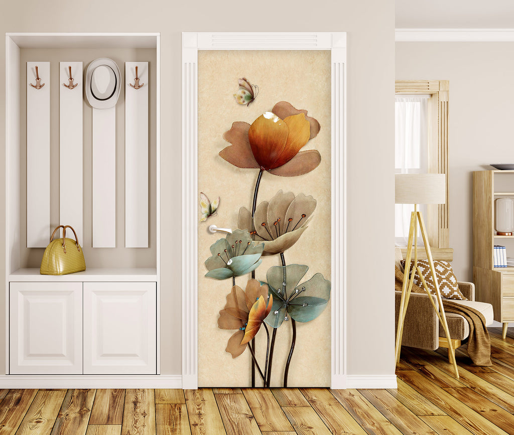3D Flowers Butterfly 23110 Door Mural Sinsin