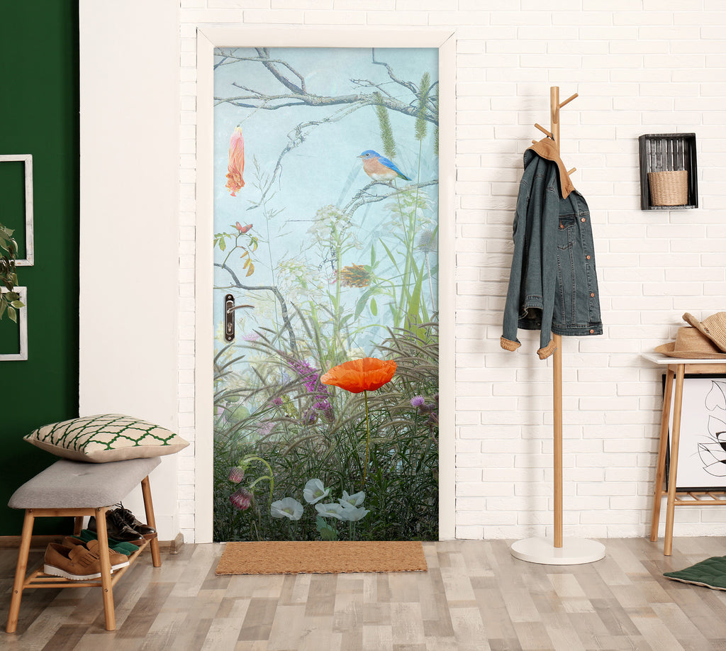 3D Flowers Grass Bird 107184 Beth Sheridan Door Mural Sinsin