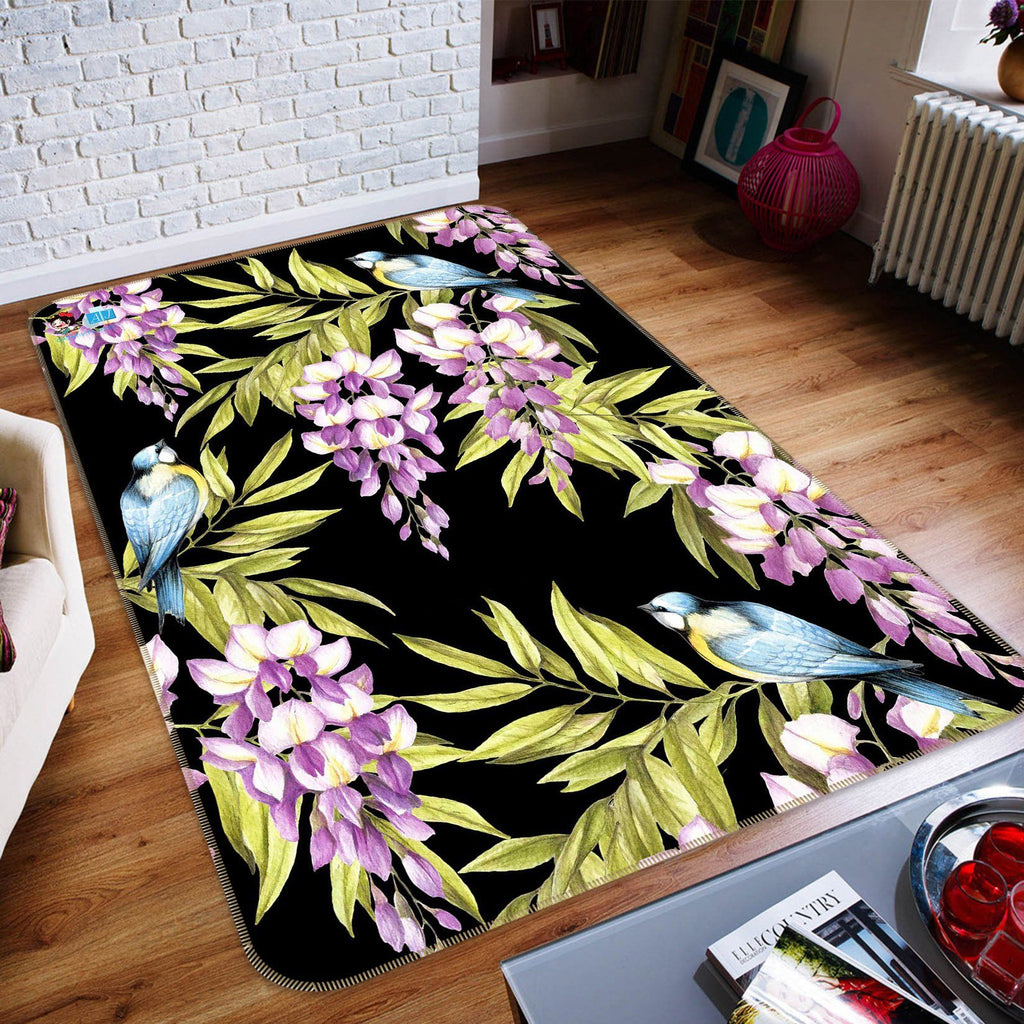 3D Flowers Leaves Birds 146 Non Slip Rug Mat