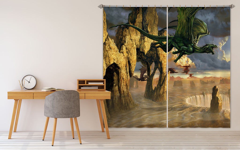 3D Fly Dragon Stone 8010 Ciruelo Curtain Curtains Drapes