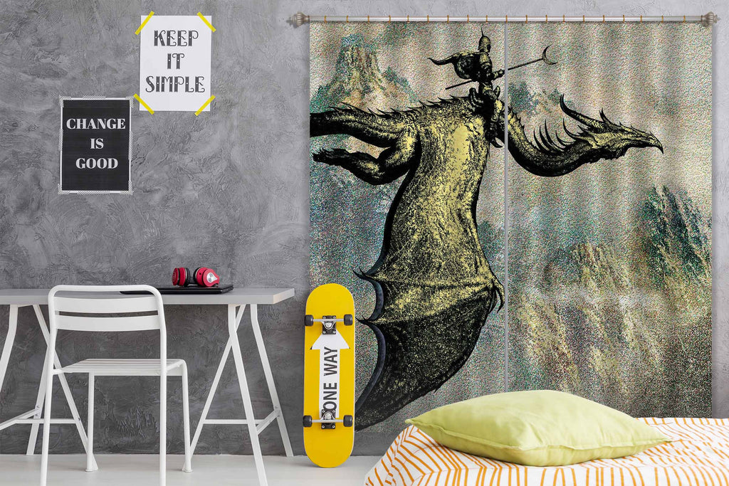 3D Fly Mount Dragon 7185 Ciruelo Curtain Curtains Drapes