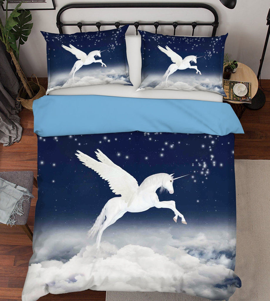 3D Flying White Clouds Unicorn 042 Bed Pillowcases Quilt