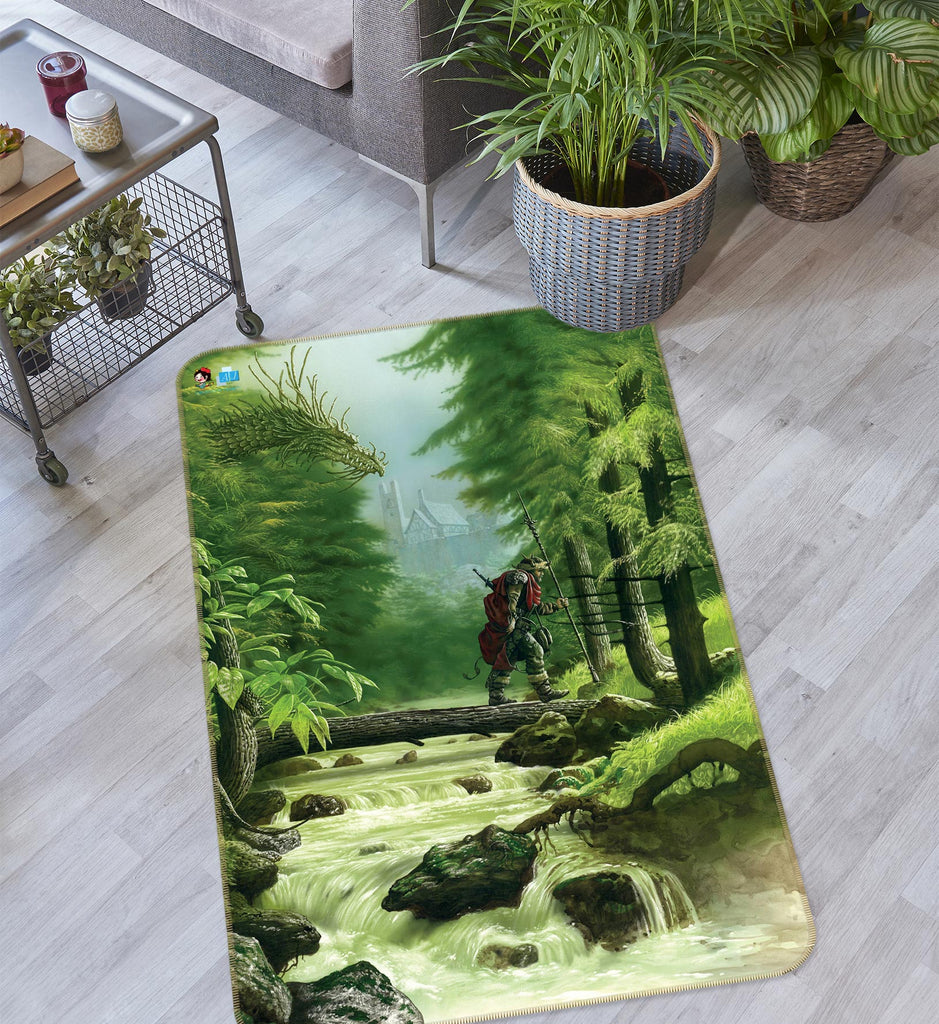 3D Forest Creek Single Log Bridge Soldier 5191 Ciruelo Rug Non Slip Rug Mat Sinsin