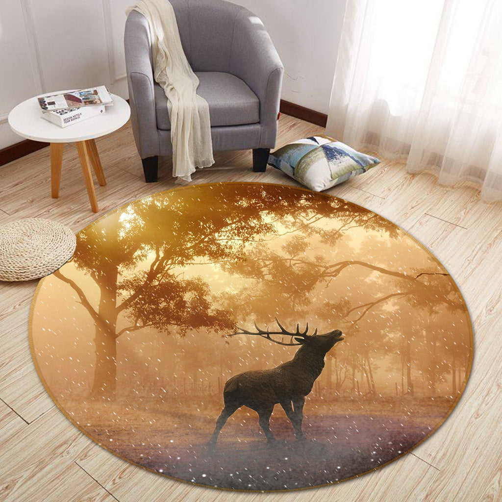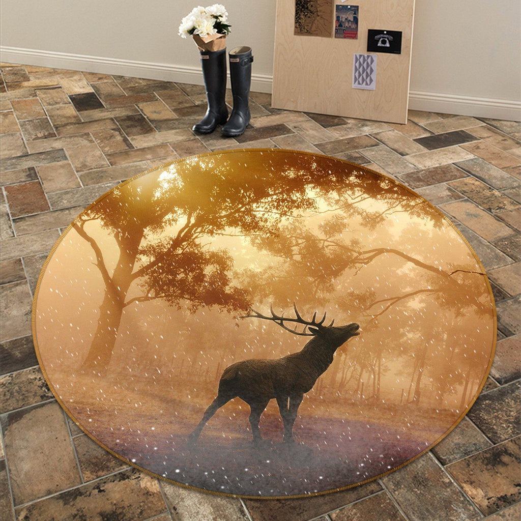 3D Forest Elk 055 Animal Round Non Slip Rug Mat