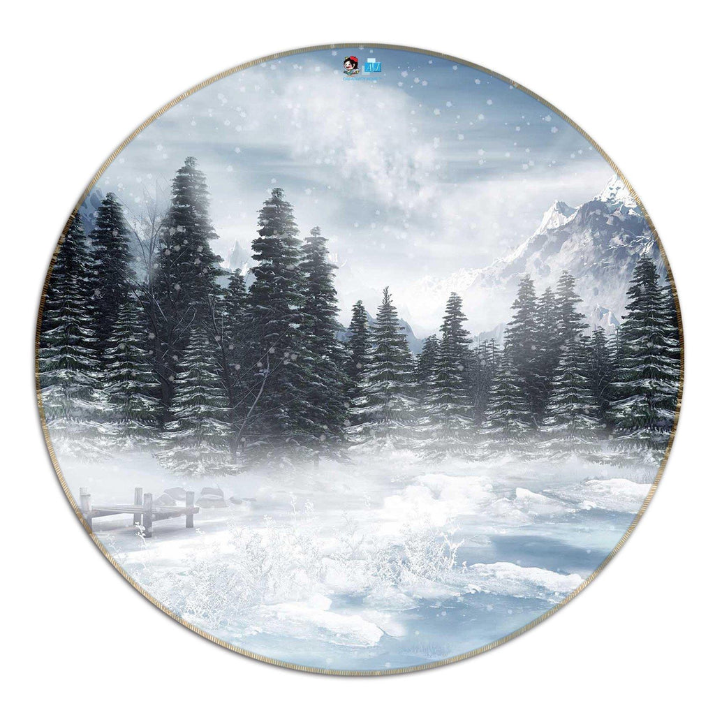 3D Forest Snow Scene 130 Round Non Slip Rug Mat