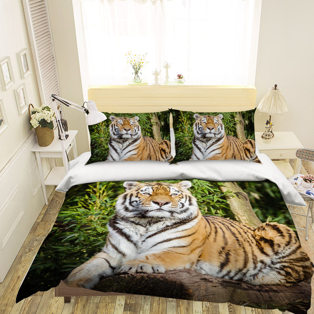 3D Forest Tiger 010 Bed Pillowcases Quilt
