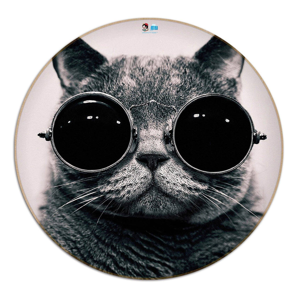 3D Funny Glasses Cat 41 Round Non Slip Rug Mat