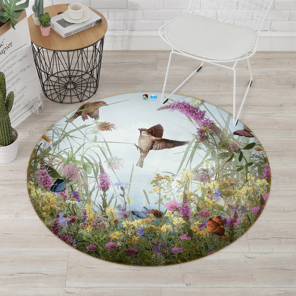 3D Garden Butterfly 5018 Beth Sheridan Rug Round Non Slip Rug Mat Amy