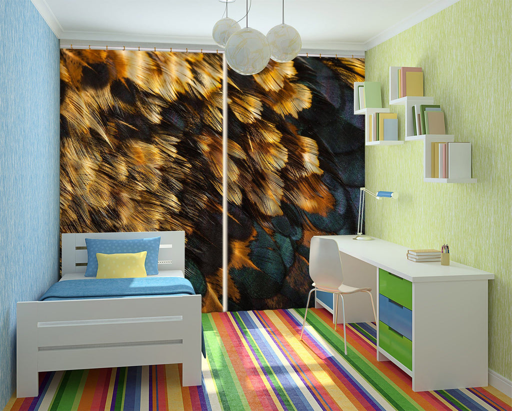 3D Gold Fluff Pattern 11 Curtains Drapes