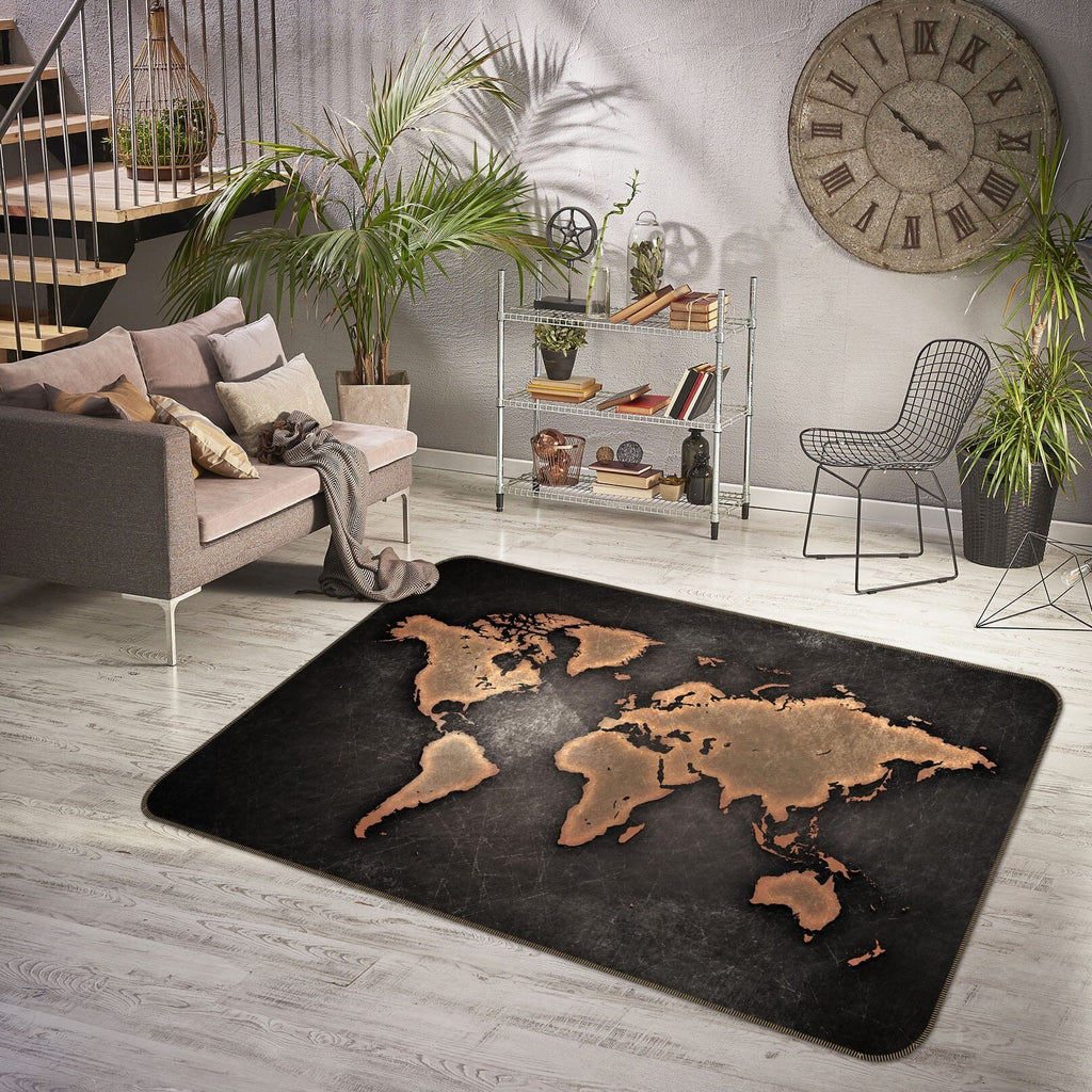 3D Gold Pattern 2005 World Map Non Slip Rug Mat