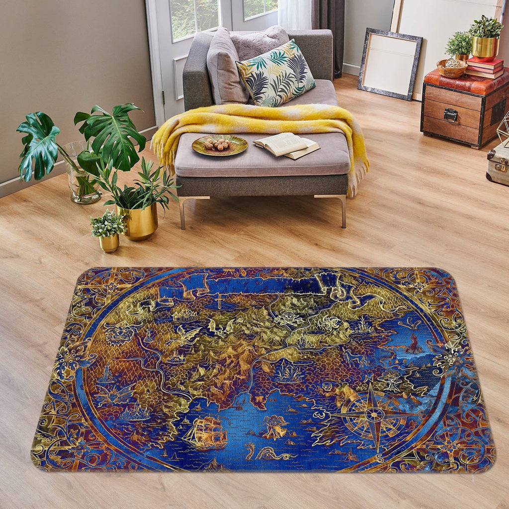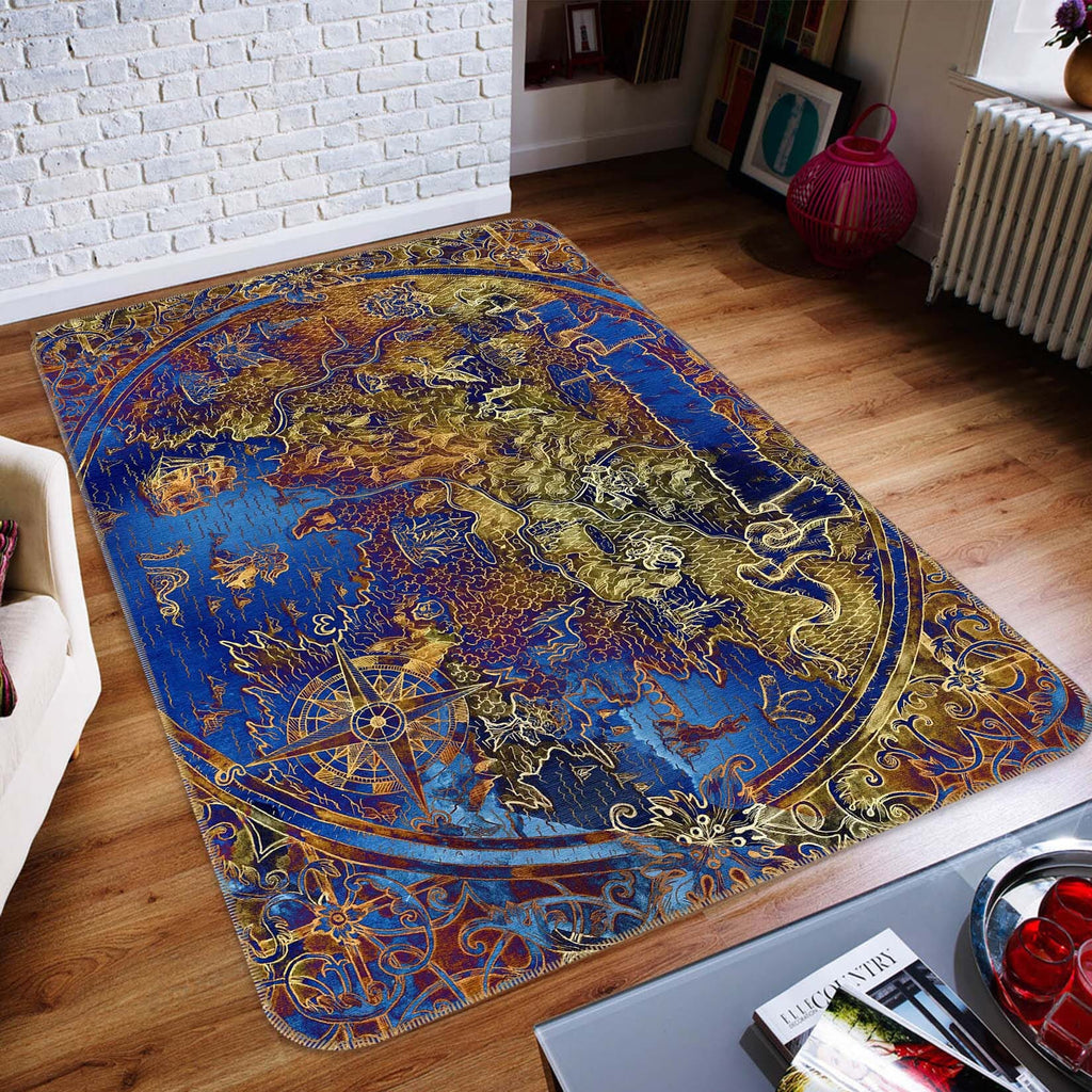 3D Golden Pattern 311 World Map Non Slip Rug Mat
