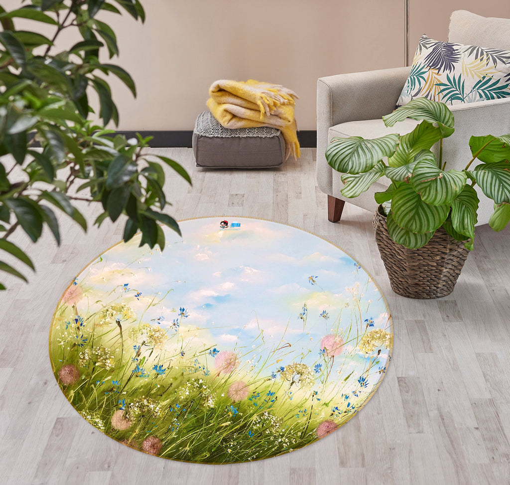 3D Grass Wildflowers 805 Skromova Marina Rug Round Non Slip Rug Mat Amy