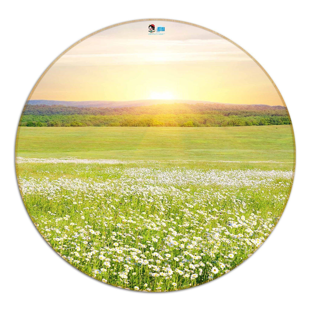 3D Grassland Flowers 124 Round Non Slip Rug Mat