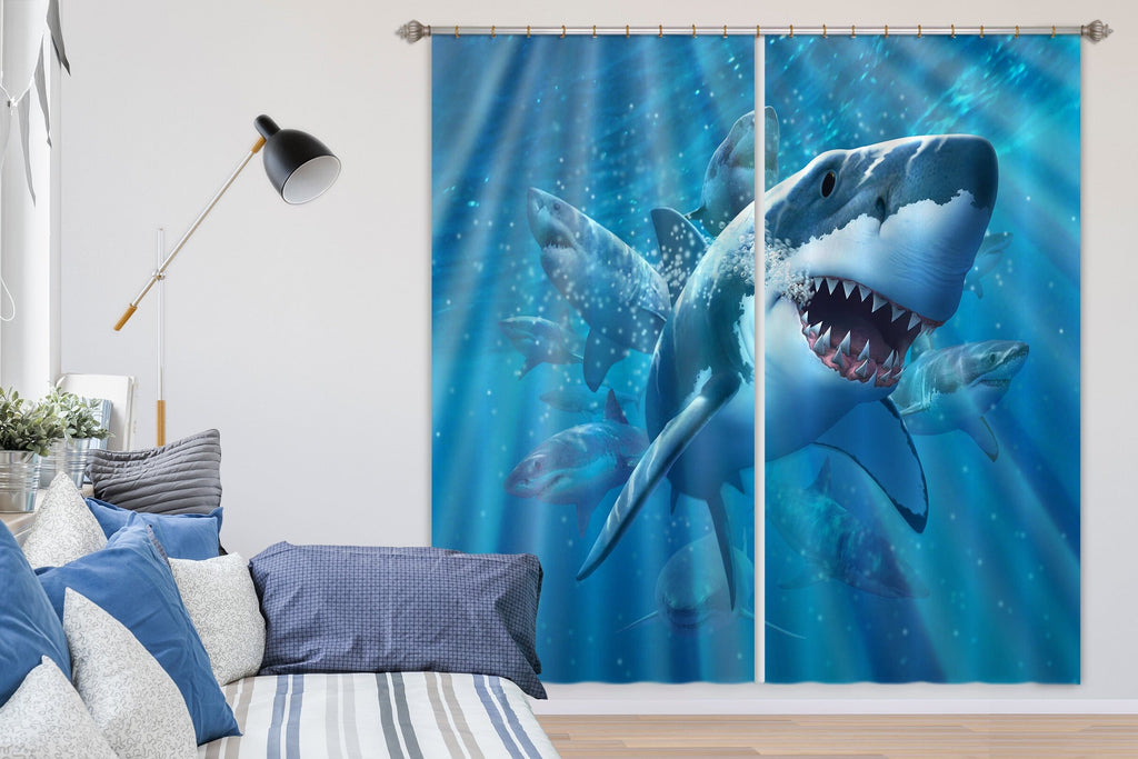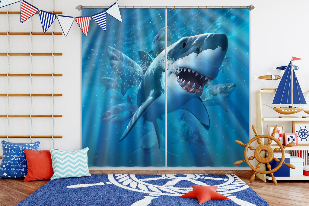 3D Great White Shark 066 Jerry LoFaro Curtain Curtains Drapes