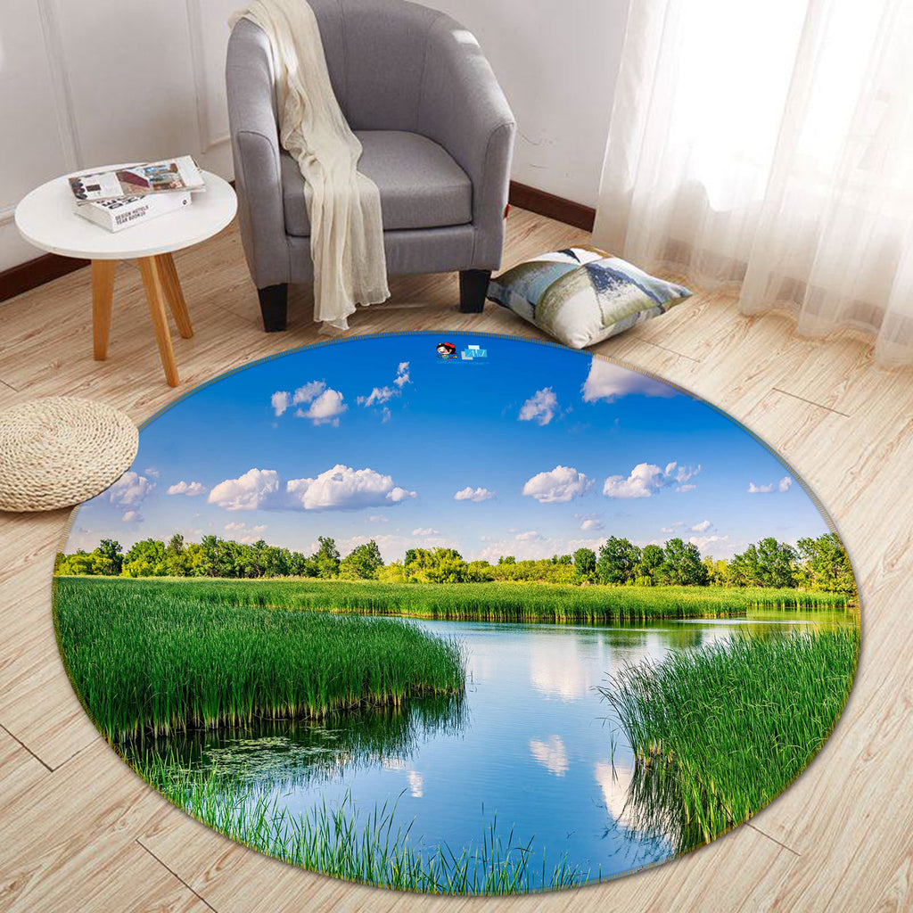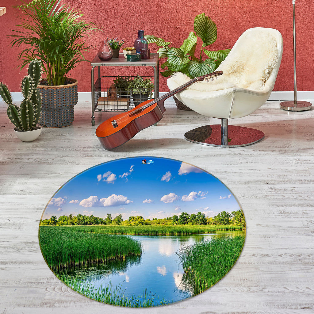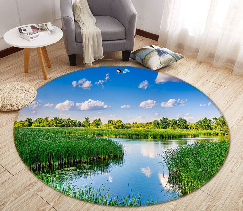 3D Green Grass Lake 5035 Beth Sheridan Rug Round Non Slip Rug Mat Amy