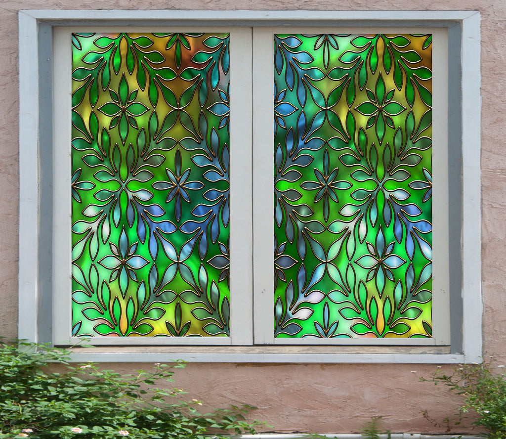 3D Green Leaves 435 Window Film Print Sticker Cling Stained Glass UV Block