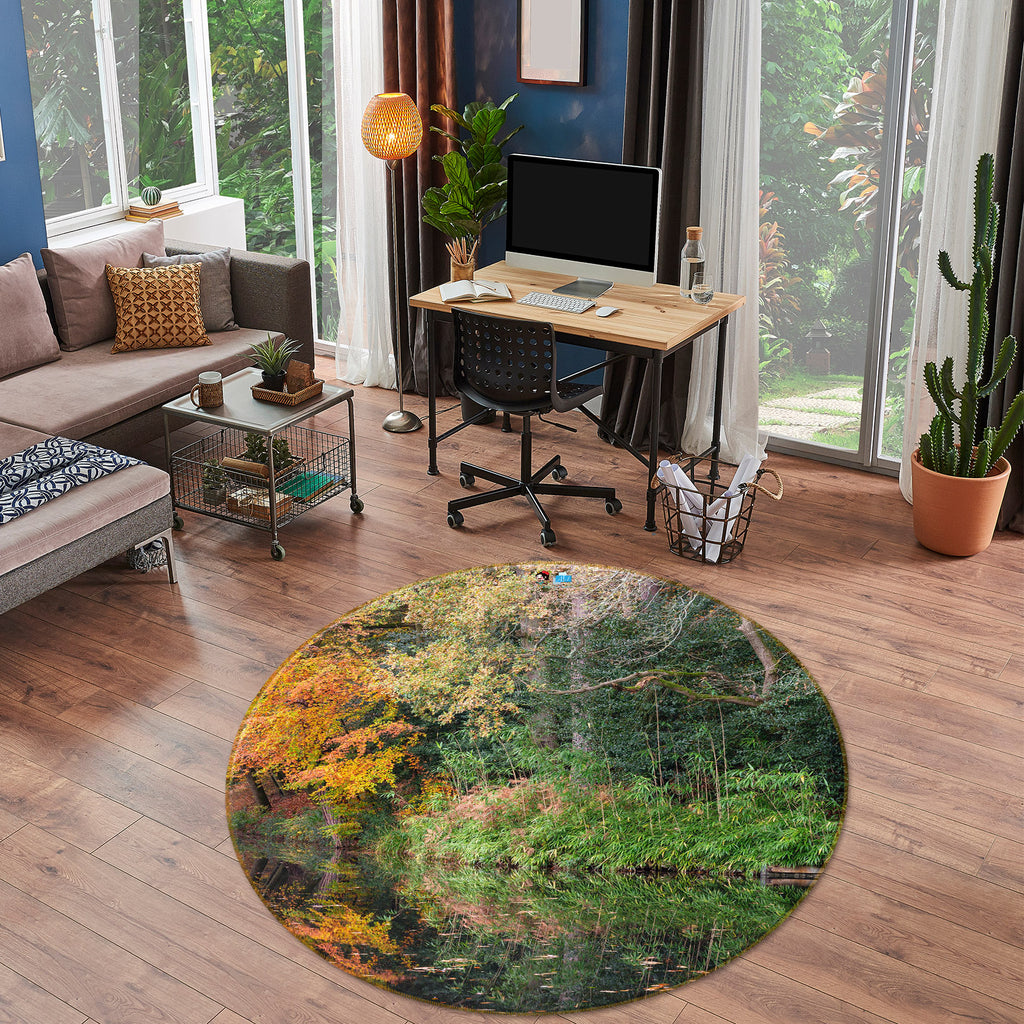 3D Green Leaves 7364 Assaf Frank Rug Round Non Slip Rug Mat Amy