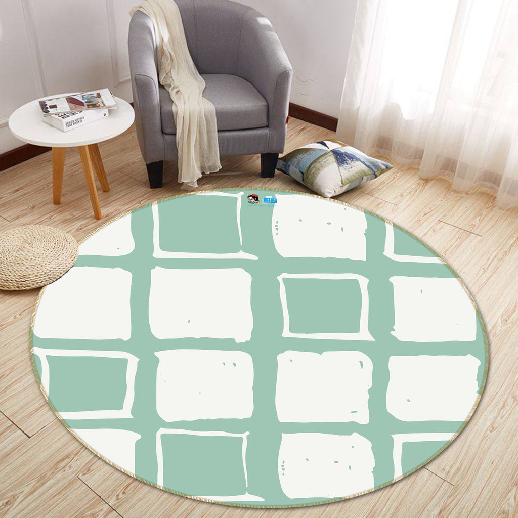 3D Green Square Pattern 104229 Kashmira Jayaprakash Rug Round Non Slip Rug Mat Sinsin