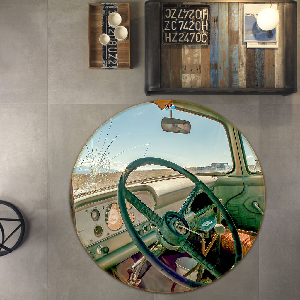 3D Green Steering Wheel 5011 Beth Sheridan Rug Round Non Slip Rug Mat Amy