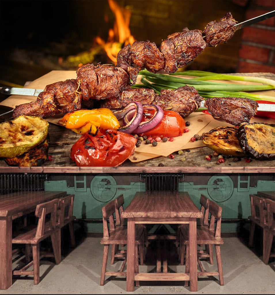 3D Grill Kebab Shop BBQ 343 Wall Mural Wall Murals Commercial Amy