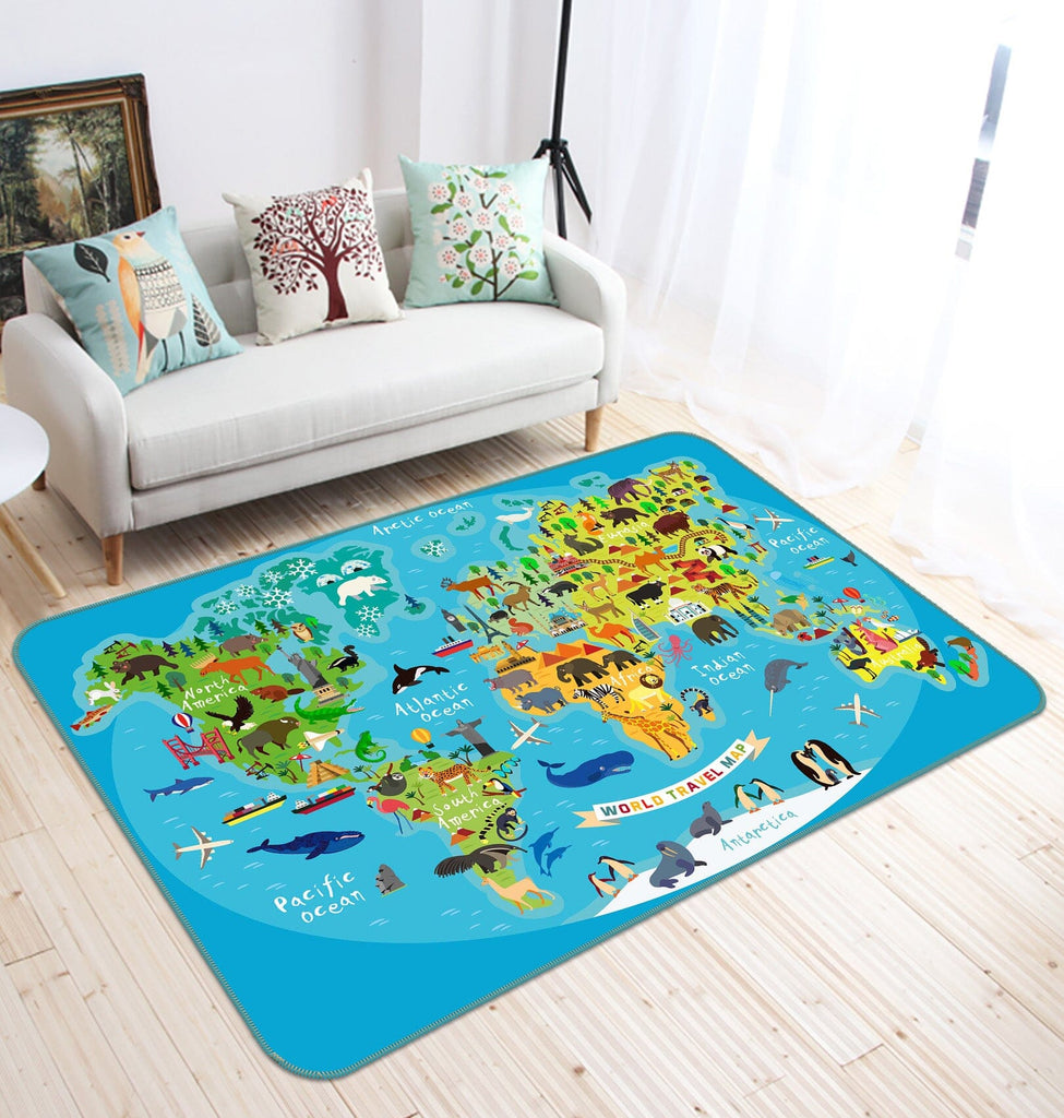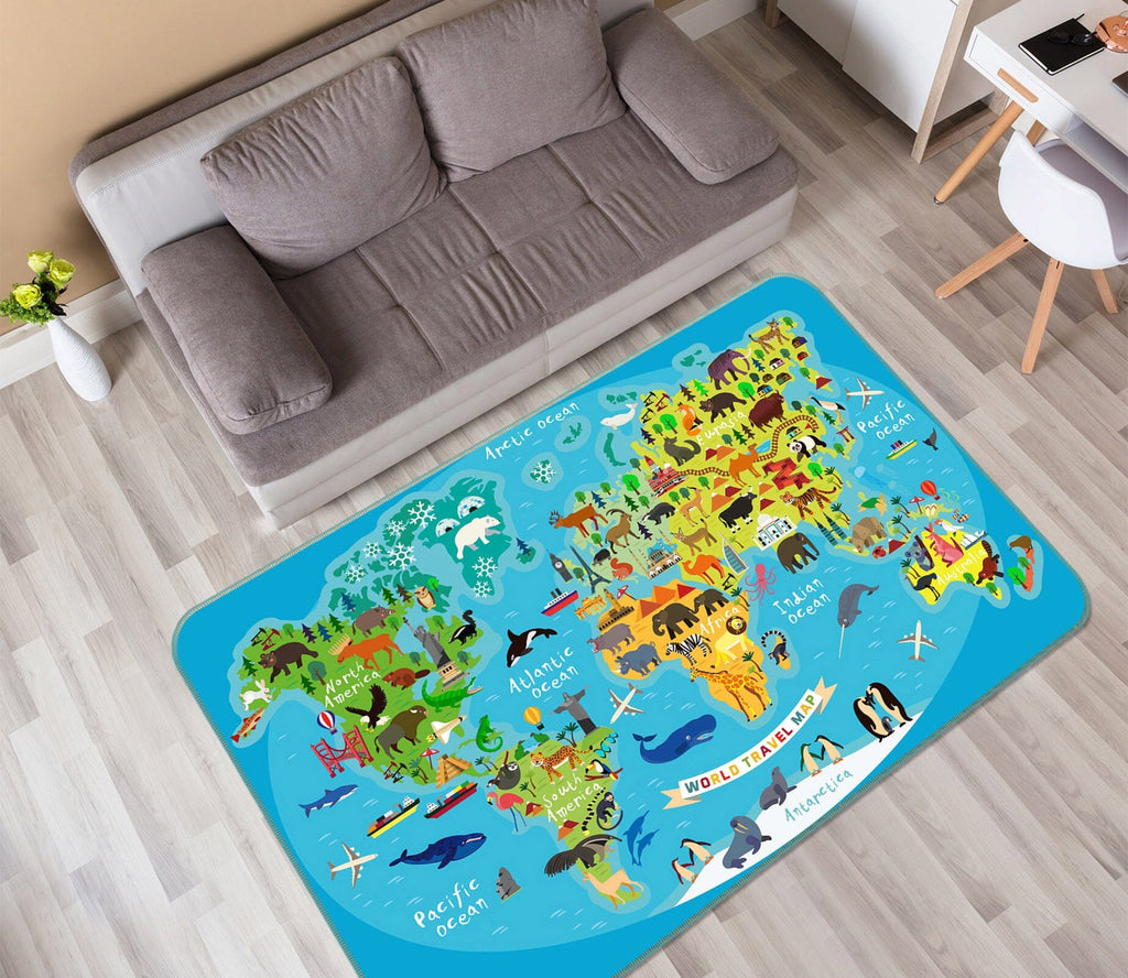 3D Island Forest 314 World Map Non Slip Rug Mat