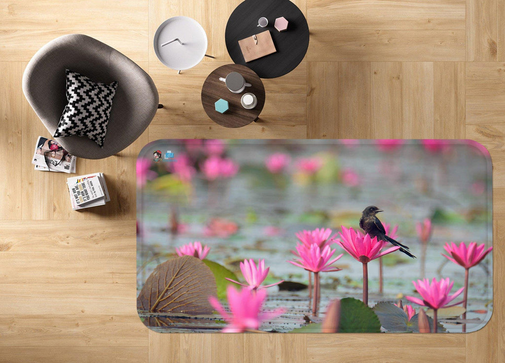 3D Lake Flowers Bird 83 Non Slip Rug Mat