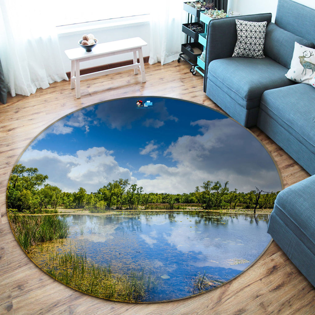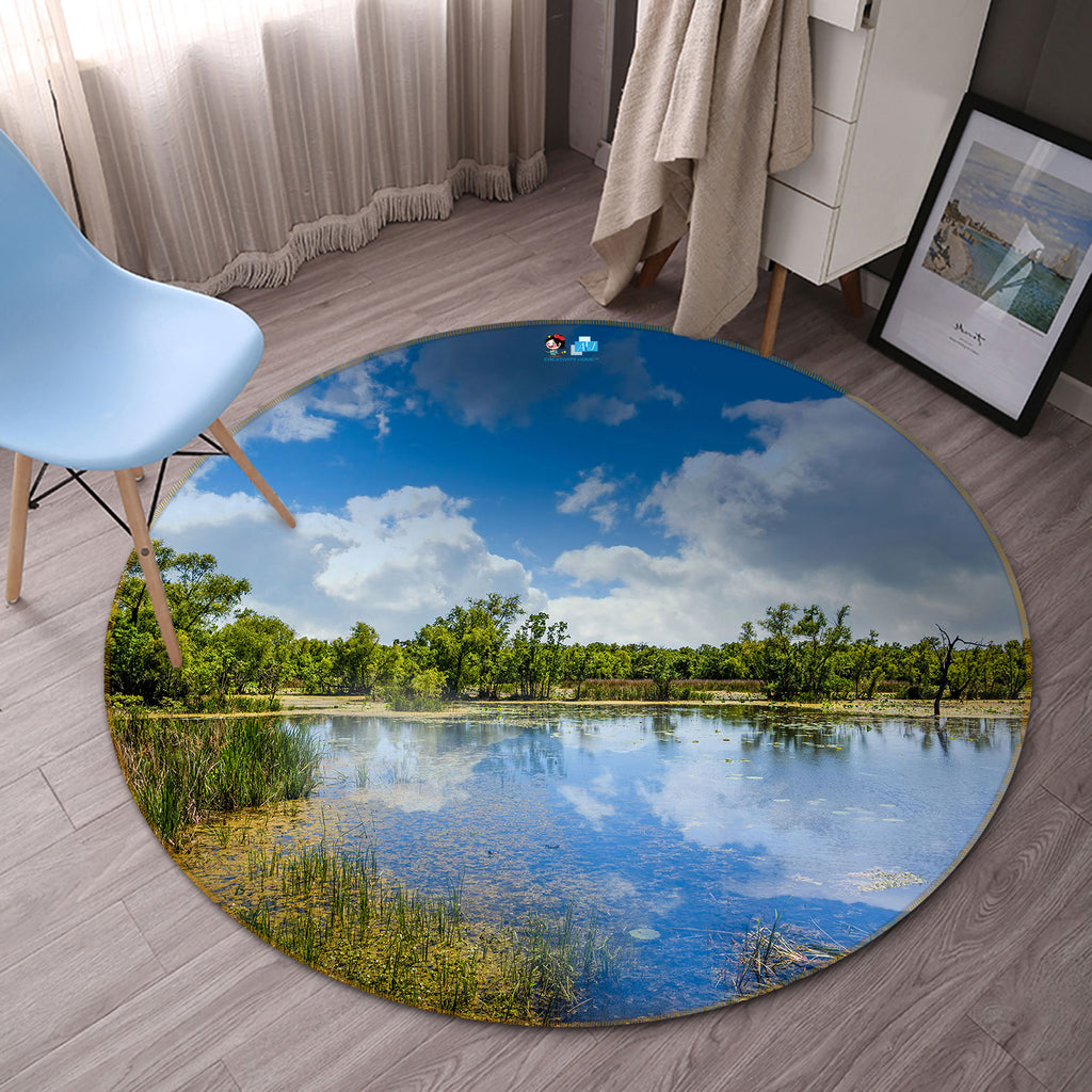 3D Lake Grass Trees 5009 Beth Sheridan Rug Round Non Slip Rug Mat Amy