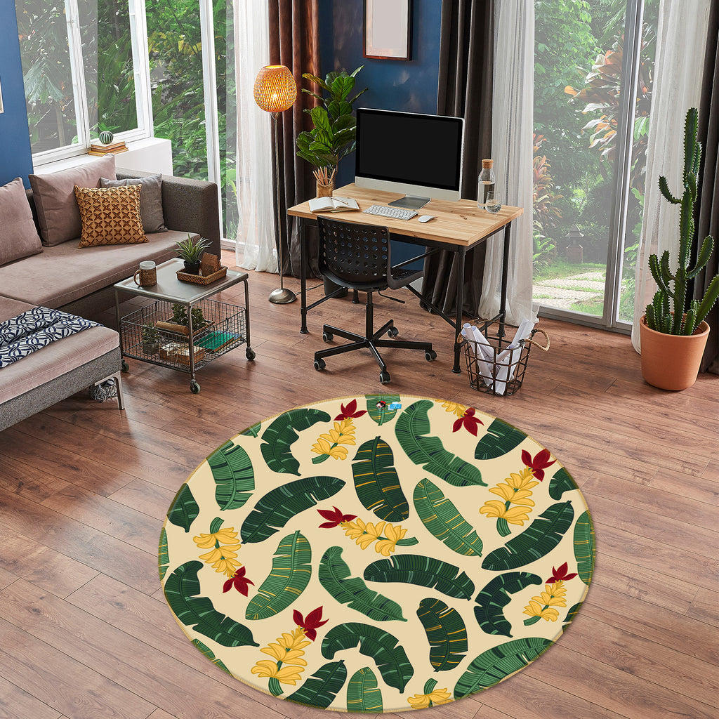 3D Leaves Yellow Flower 10532 Kashmira Jayaprakash Rug Round Non Slip Rug Mat Sinsin